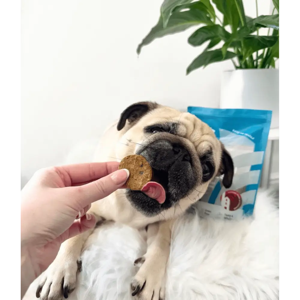 - Supports Skin & Coat Health: Rich in essential fatty acids, particularly Omega 3 and 6, these cookies promote a shiny coat and healthy skin. They help to moisturise, reduce itching, and minimise shedding.