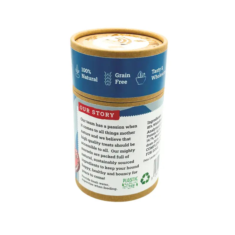 - 100% Natural & Grain-Free: These treats are made with only two ingredients – 85% sustainably sourced whitefish and 15% potato, offering a simple yet nutritious snack that dogs love.